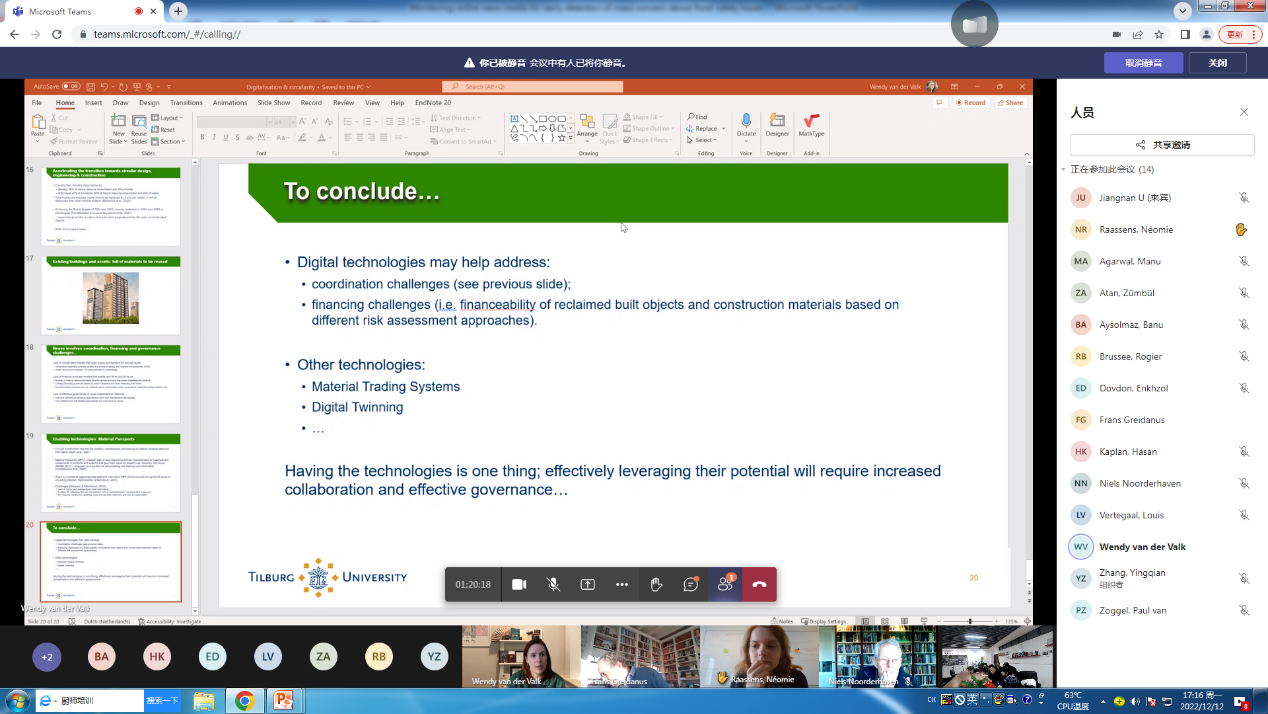院长浦徐进做总结发言,感谢中荷两方学者对本次研讨会的支持,并期待早日在线下开展交流。此次论坛为中荷高校后续开展进一步的联合研究、教师互访和学生项目奠定了坚实的基础。