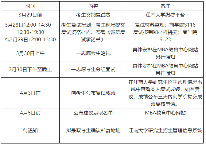 注:调剂考生相关安排另行通知。
