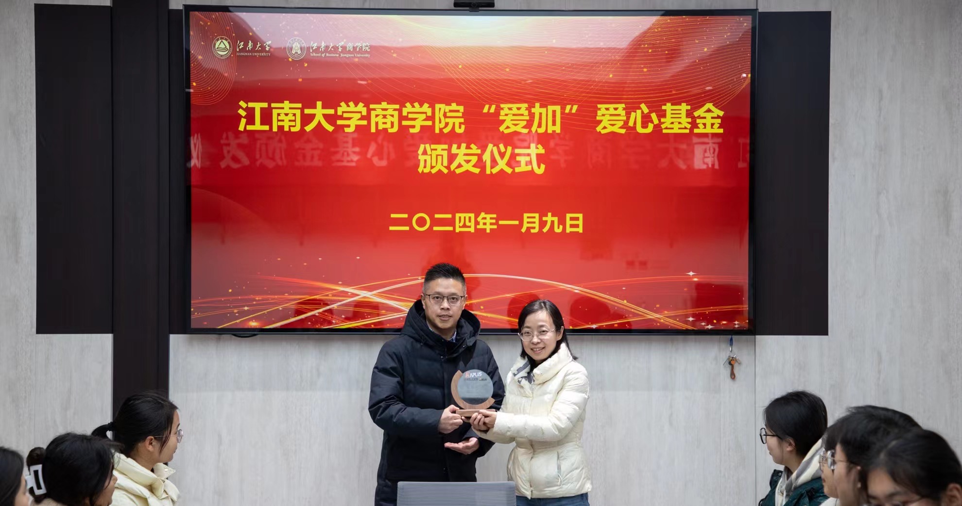 在与会人员的共同见证下,陈兵、江舟向学生颁发获助证书,徐静向陈兵颁发爱心捐赠纪念牌。颁发仪式上,获助学生和陈兵校友、江舟总监进行了交流,陈兵校友的热情回复给了在校学生很大的启发。