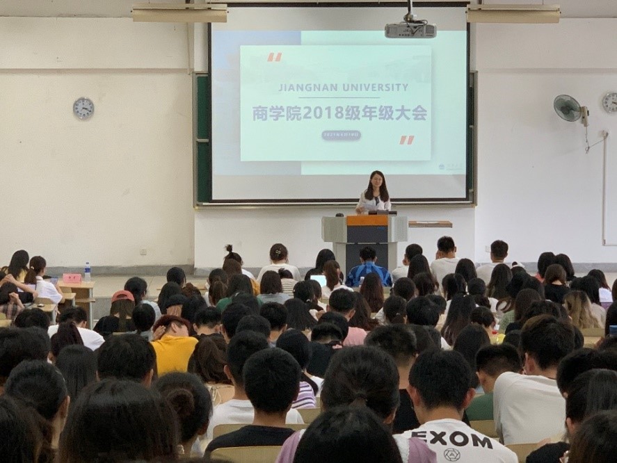 6月10日,学院针对全体2018级学生开展“学业安全暨考试诚信教育”专题年级大会。大会分为学业安全教育、基本规章制度、培养方案、考试诚信教育等部分,由学院教务办黄芳和辅导员孙旭媛共同讲解答疑。