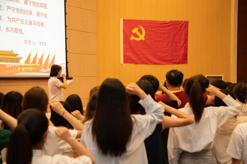 紧接着,徐静同志上台领誓,67名新党员面向党旗庄严宣誓,老党员一起重温入党誓词。这一刻,每一句誓词都仿佛是一颗颗炽热的心在跳动,每一个字都充满了对党的忠诚和对事业的执着。新党员们更加深刻地理解了入党誓词的含义和重要性,更加坚定了为党和人民事业奋斗终身的决心。