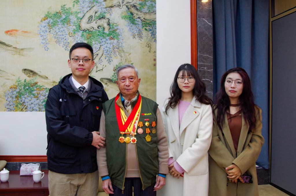 研究生会代表跟随无锡市新四军历史研究会副会长郝志刚一同来到无锡市博物馆,迎接朱凤仪、胡新、朱琳琅和张德勤等四位新四军老兵及其家属,并陪同参观新四军历史展。