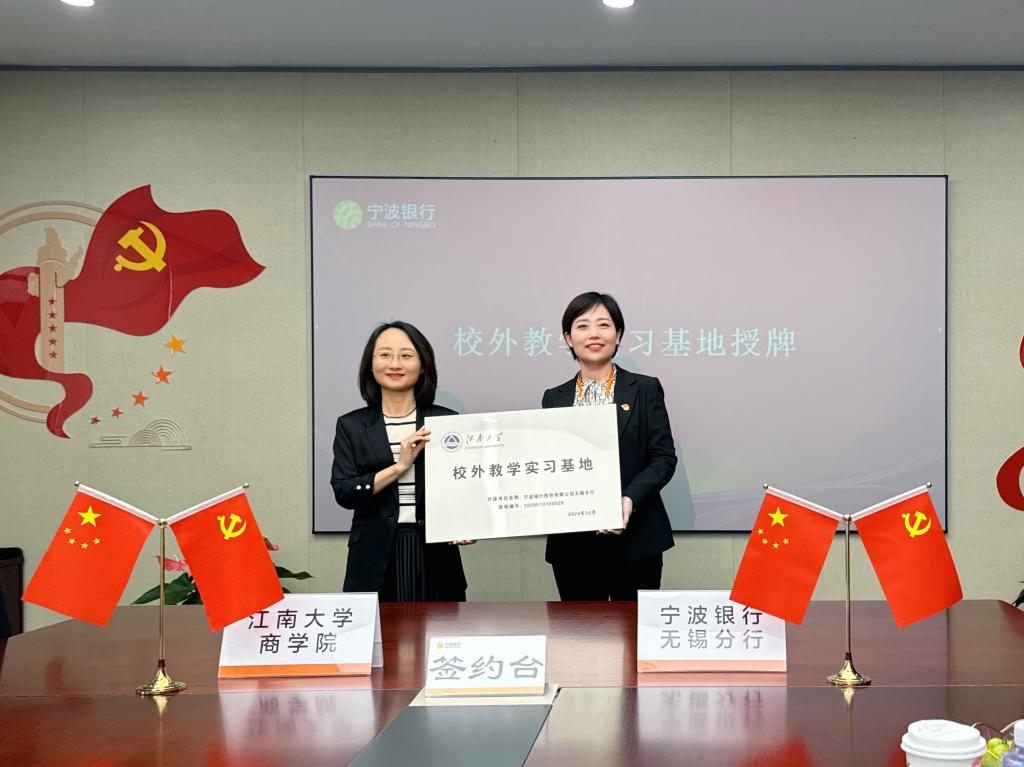 签约仪式结束后,孙小芳为宁波银行无锡分行授予污污漫画 “校外教学实习基地”工作牌,为深化产学研深度合作、促进学生高质量就业强化力度保障。