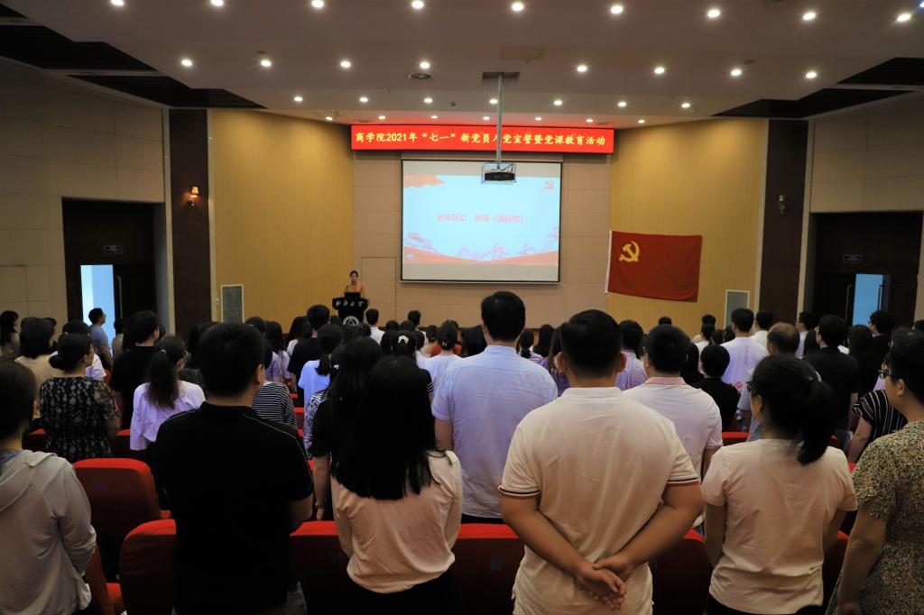 党委书记徐锡清、党委副书记兼副院长徐静、教职工党员、75名新发展学生党员以及结对共建的机关党委审计处党支部成员参加此次活动。