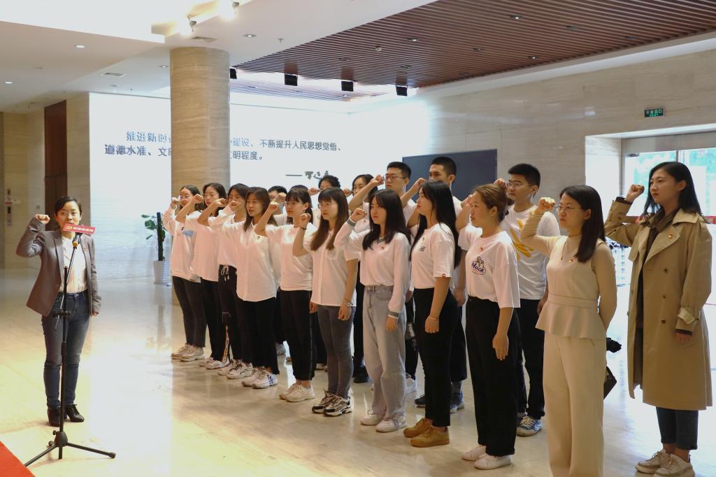 站在鲜红的党旗前,全体党员重温入党誓词。由徐静福书记领誓,全体党员同志坚定宣誓。“我志愿加入中国共产党”的嘹亮誓言响彻滨湖区党建馆的大厅,展现出青年党员“为共产主义奋斗终身,随时准备为党和人民牺牲一切,永不叛党”的坚定信念。重温入党誓词,回顾入党初心,在党旗之前,全体党员表决心、坚信念,开启参观学习之旅。