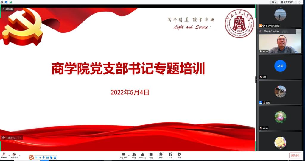 党委书记徐锡清主持,全体师生党支部书记、辅导员近30人参加在线培训。