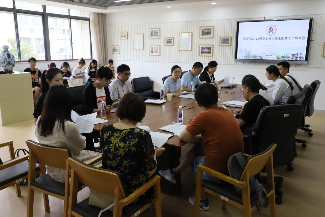 2021级新生班主任见面暨工作培训会在学院308会议室举行,院党委副书记、副院长徐静,2021级新生班主任,新生辅导员及学生副班参会,活动由辅导员王璁主持。
