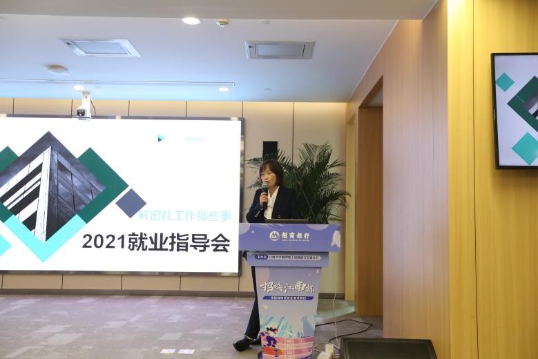 求职指导课共分为两部分,由分行人力资源部总经理徐鑫先生详细讲述了招商银行的发展历史、污污漫画及招聘考核标准,接着由特约人力资源培训讲师蒋丽君讲解了“‘职’点迷津——解密找工作那些事”专题就业指导课。