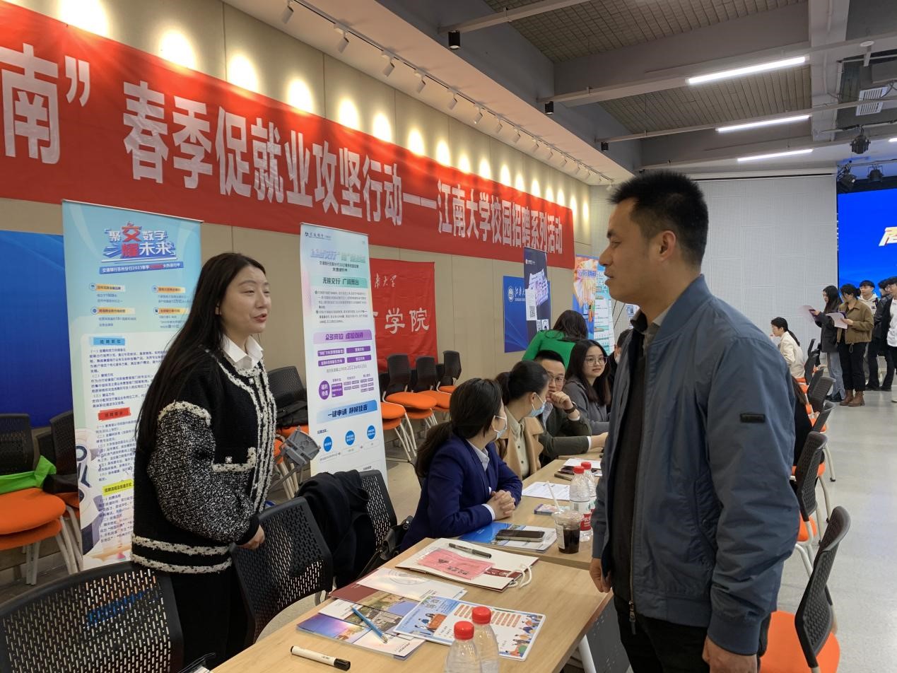 招聘会期间,院长浦徐进、党委副书记兼副院长徐静前往会场,和企业相关负责人、招聘专员以及求职应聘的学生进行了亲切交谈,深入了解了当前用人单位的招聘需求和学生的求职诉求,鼓励同学们主动与面试官交流,把握时机,尽早就业、高质量就业。参会企业在展位前陈列好宣传展架与招聘册页,积极地向学生作企业理念、招聘岗位、职能需求和薪资待遇等方面宣讲介绍,热情接待应聘学生并为其答疑解惑,并对招聘会的组织筹备表示高度认可。此外,为做好自身职业生涯规划、了解本专业就业前景,部分有强烈实习意愿的其他年级同学闻讯来到现场,与企业单位咨询交流、加深了解,与校就业工作负责老师解晏宁、薛羚伟就考公考编、简历修改等方面作细致请教。