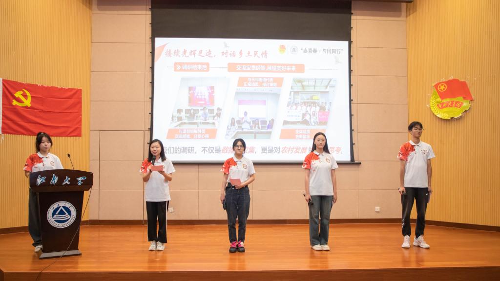 实践归来,共话成长。学院“志青春·与国同行”寻迹百年团队以实践短片为序,向现场师生讲述五年成长历程和青春接力故事。2024年暑期,团队与孙冶方等特称团支部携手中国社会科学院经济研究所、中国社会科学院大学,积极投身“第五次无锡、保定农村调查”,追溯光辉历史,讲述实践经历,分享调研感想,立足商科所学,贡献青春力量,以实际行动奔赴一场跨越百年的学术传承。