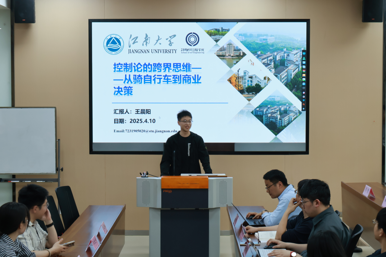 王晨阳博士以《控制论的跨界思维——从自行车平衡到商业决策》为主题作报告,从控制与决策之间的内在联系切入,通过自行车平衡、服装生产等具体案例,分析了控制科学与工程的重要性,系统阐释了现代控制论的核心要素,以及其中的建模、控制策略与优化方法等基础理论。同时他结合当下各领域跨界融合的发展趋势,剖析了控制理论应用面临的机遇和挑战。他指出,许多管理与经济问题的本质就是控制论的问题,如生产调度、资源分配及风险控制等,非周期采样控制为传统决策模式提供了新思路,也给跨学科研究带来了新可能。