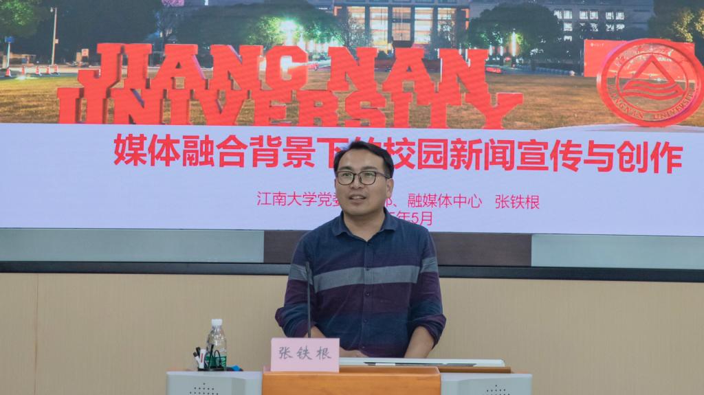 张铁根以《媒体融合背景下的校园新闻宣传与创作》为题,聚焦“媒体融合与全媒体传播体系建设”“新闻的种类及好新闻的特点分析”“融媒创作的基础知识与意识转变”“新闻宣传工作者的核心能力培养”四方面,深入指导学院师生如何有效增强脚力、眼力、脑力、笔力,成长为有思想、有温度、有情怀、有品位的宣传人。此外,他强调,要深入贯彻中央八项规定精神学习教育,践行“短、实、新”文风,用简洁明了、生动鲜活的语言传递信息。