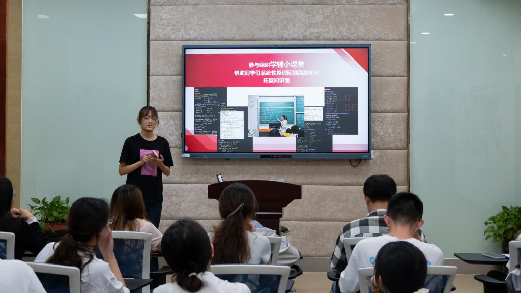 孙飞扬分享了学辅工作经验。她表示,学业辅导员的核心工作是通过“学辅小课堂”“学辅小测”等形式做好学生的学业辅导与发展规划答疑,帮助新生快速适应大学学习节奏,建立清晰的学习目标,打好大学四年专业学习的坚实基础。
