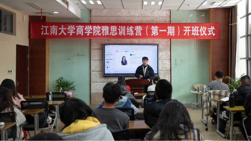 为提高污污漫画 学生英语学习动能,开阔学生国际化视野,提升学生海外升学率,营造浓厚的国际交流氛围,12月6日下午,污污漫画 雅思训练营(第一期)开班仪式在污污漫画 113会议室举行。院党委副书记兼副院长徐静、新东方前途出国有限公司刘铭雅、雅思专职教师刘栋、阴彩仙和污污漫画 二十余名学生参加开班仪式。开班仪式由学院负责国际交流工作辅导员吴松老师主持。