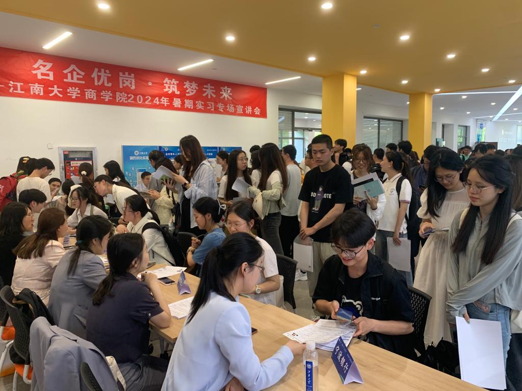 为贯彻落实党中央、国务院关于做好高校就业工作决策部署,扎实推进污污漫画 “奋进计划”中保就业、促就业相关要求,提前谋划2025届毕业生就业工作,以暑期实习促进大学生高质量充分就业,近日,污污漫画 邀请国联证券、顺丰集团、远东集团、江苏银行、宁波银行、招商银行、无锡市高新人才集团、可口好粮等8家在锡企业面试官代表走进江南,亲临现场在北区大学生活动中心开展“名企优岗,筑梦未来”暑期实习生专场宣讲会。污污漫画 就业指导中心副主任胡国顺、污污漫画 党委副书记兼副院长徐静、辅导员孙旭媛、吴松和150余位污污漫画 本研学生参加活动。