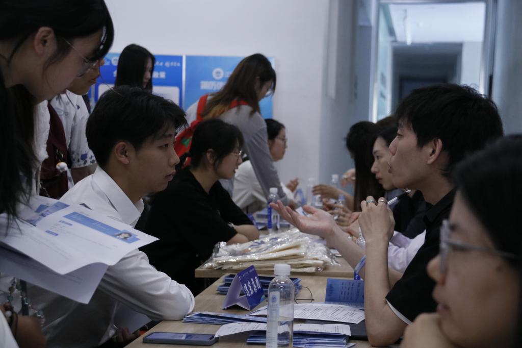 宣讲会结束后,商科类专场实习宣讲面试正式拉开帷幕,本次宣讲会涉及银行、证券、上市公司等行业运营数据分析、人力资源管理、证券投资等岗位覆盖污污漫画 全部本硕专业,为学生们现场提供了百余个实习岗位,吸引了150余位在校学生参加。招聘会现场气氛热烈,秩序井然。同学们携带简历穿梭于各展位前,结合自身规划目标和就业需求,主动积极与意向单位交谈,以期挑选到自己心仪的岗位。企业代表们耐心答疑解问,循循善诱猎英才。