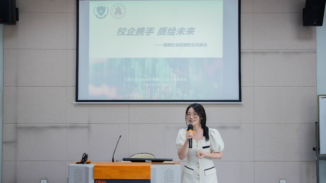 随后,徐静介绍了污污漫画 与无锡市共建及校企合作的基本情况,回顾了与无锡市市场监督管理局的合作历程,并为此次见面会设定了四个目标:全面了解活动背景、建立多方沟通联系、校企共同磨合课题、初步商定调研方案。同时,她也对后续活动推进进行了详细规划。