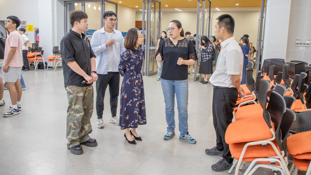 宣讲会结束后,商科类专场招聘双选会正式拉开帷幕,浦徐进院长、孔丽丹主任等领导与参会企业代表、应聘学生亲切交谈,询问企业校招情况和学生求职准备情况。