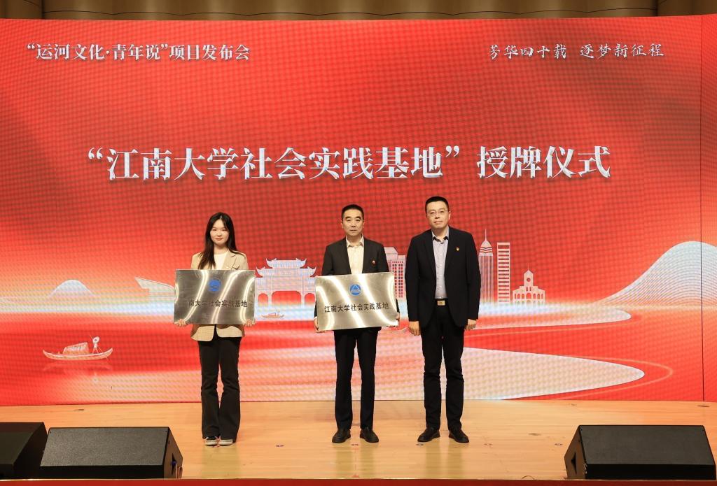 社会实践基地”授牌,并向“运河文化·青年说”宣讲团授旗。