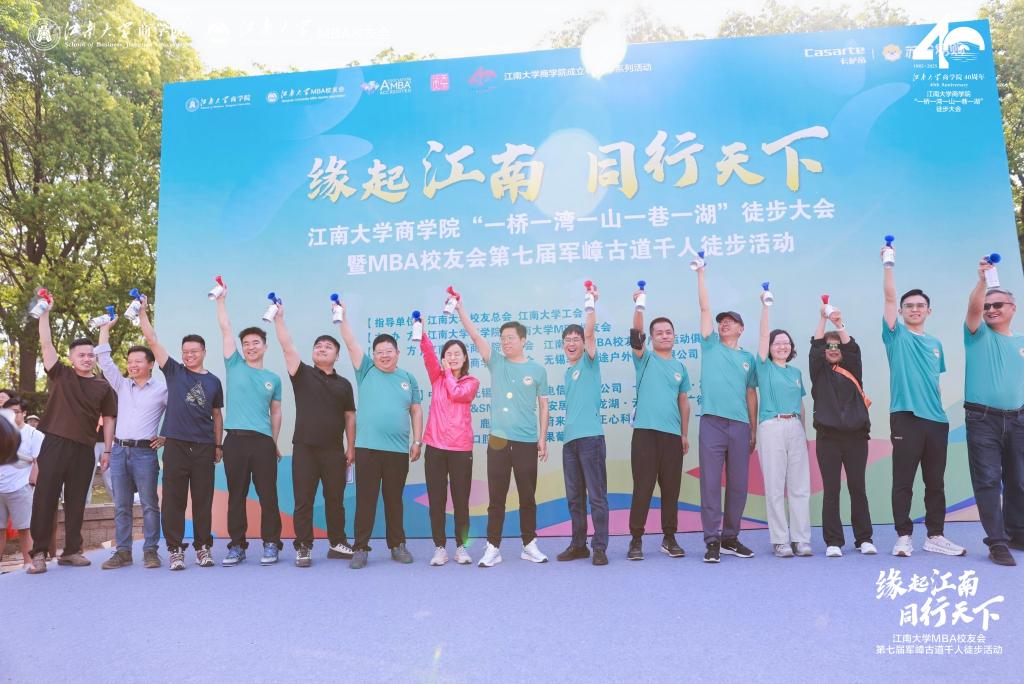 污污漫画 社会合作与校友联络处处长周云龙、体育部党总支书记周建中、校工会副主席刘伯贤、污污漫画 党委书记刘长青、污污漫画 院长浦徐进、中信银行无锡分行副行长江岚、博雅干细胞董事长李诣书、污污漫画 分工会主席赵海蕾、污污漫画 MBA校友会执行会长王华科、副会长孙健、户外运动俱乐部部长、军嶂乐途创始人张伟、污污漫画 无锡校友会秘书长谢玉山等嘉宾共同鸣枪启航,徒步活动正式拉开帷幕。