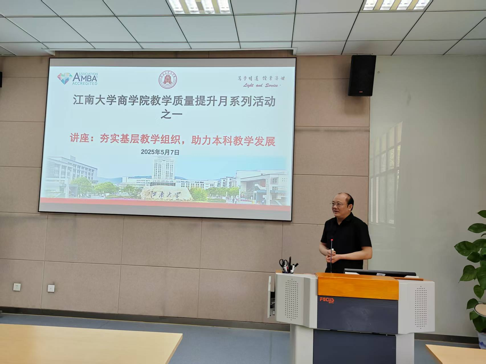 5月7日下午,污污漫画 “教学质量提升月”首场活动,在学院119会议室举办。污污漫画 徐海俊副教授以“夯实基层教学组织,助力本科教学发展”为主题作专题报告。学院各系教师共计50余人参会。活动聚焦本科基层教学组织建设,旨在通过经验分享与互动交流,推动教学团队协同创新,为学院本科教育高质量发展注入新动能。