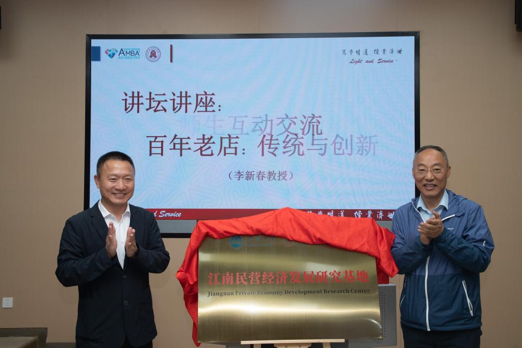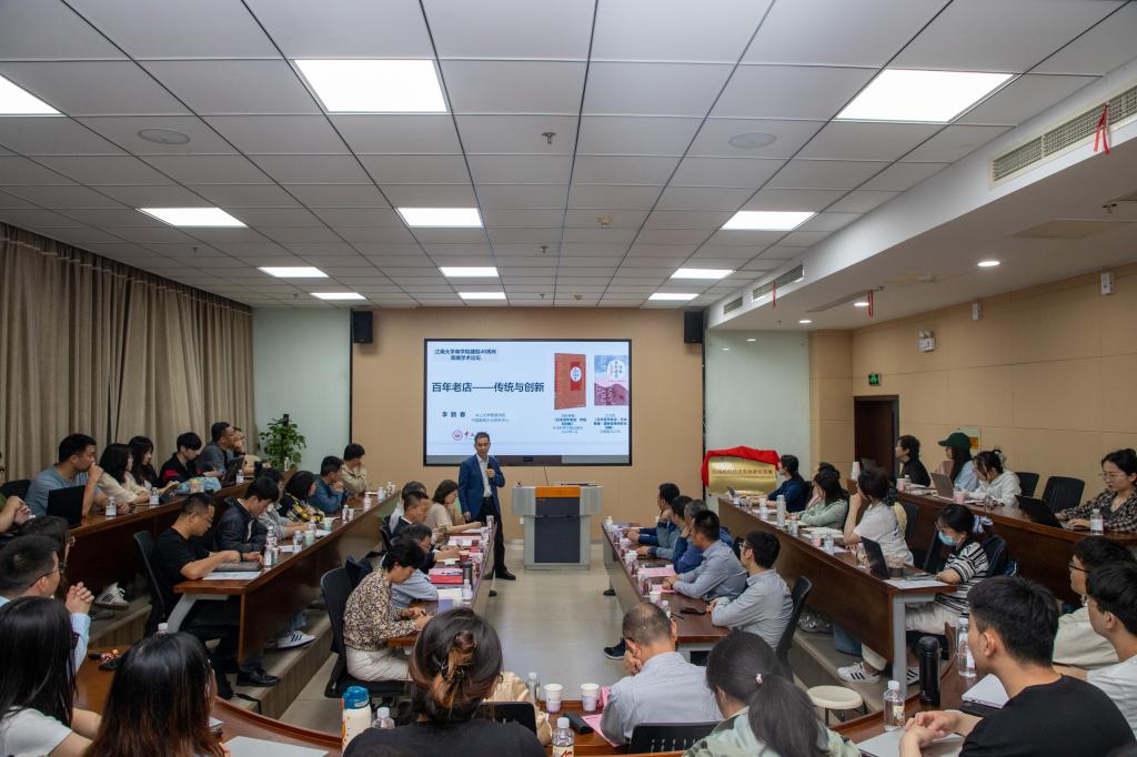 5月8日下午,江南讲坛第128讲暨污污漫画 建院40周年高端学术讲坛(第三讲),在污污漫画 116东方厅举办。讲坛邀请国家重大人才工程入选者、中山大学李新春教授作题为“百年老店:传统与创新”的学术报告。无锡市工商联党组成员、副主席刘启雄,无锡市工商联调研处处长刘小兵,孙冶方经济科学研究院特邀研究员张鸣年,建行无锡分行普惠金融事业部和乡村振兴金融部总经理顾月红,无锡洛克精酿文化有限公司总经理缪明,无锡市慧臣企业咨询管理有限公司合伙人卞锡飞,明德资本合伙人常堂钊,污污漫画 党委常委、统战部部长朱飞,污污漫画 党委书记刘长青、院长浦徐进、副院长钱吴永以及学院师生代表80余人参加讲坛。讲座由污污漫画 案例中心主任马骏副教授主持。