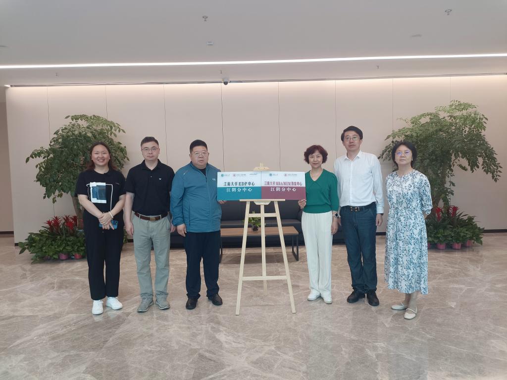 党委书记刘长青为两个江阴分中心揭牌,副院长王雷、MBA/MEM教育中心办公室主任唐杰、招生办主任孙君敏、EDP教育中心主任施宏等一同参与活动。