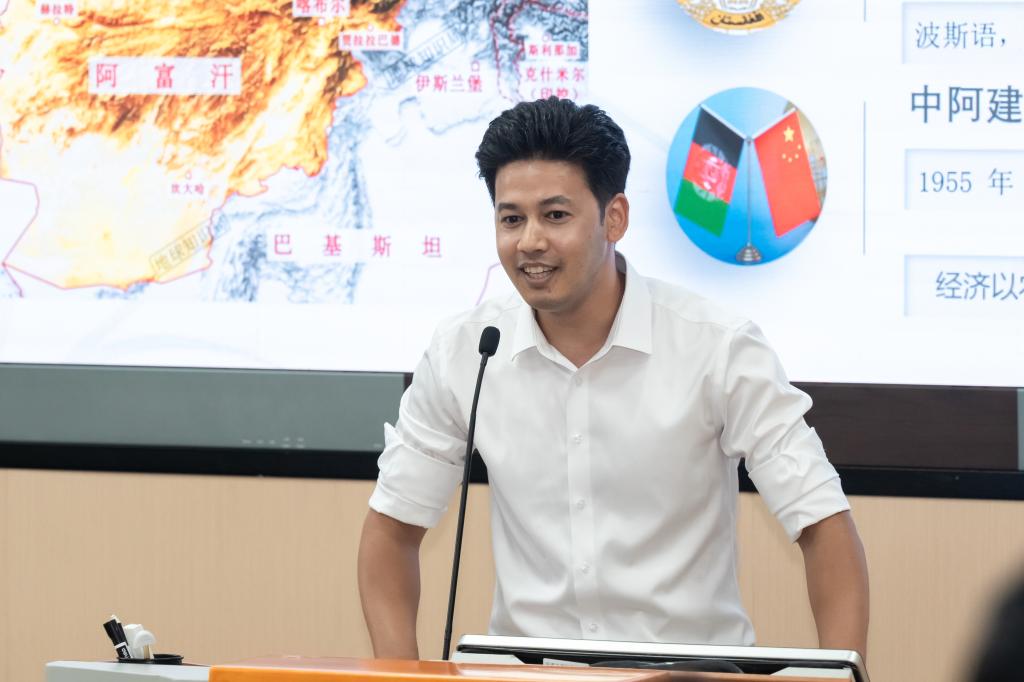 在留学生主题论坛环节,来自阿富汗的丝路项目2024级留学生许强力和王俊逸以《阿富汗在一带一路与丝绸之路的战略角色》为题,为大家展示了阿富汗的地理风貌,剖析了阿富汗作为欧亚大陆“一带一路”枢纽的经贸潜力。来自埃及的丝路项目2024级留学生莎莎以《深度剖析埃及消费市场:机遇、挑战与成功策略》为题作主题演讲,基于本土化洞察揭示埃及消费市场的新机遇,并用详实的数据和案例分析,为在场企业提供了鲜活的区域市场决策参考。