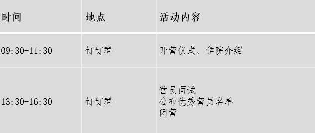 7月20日:营员报到(进入钉钉群,并签到);