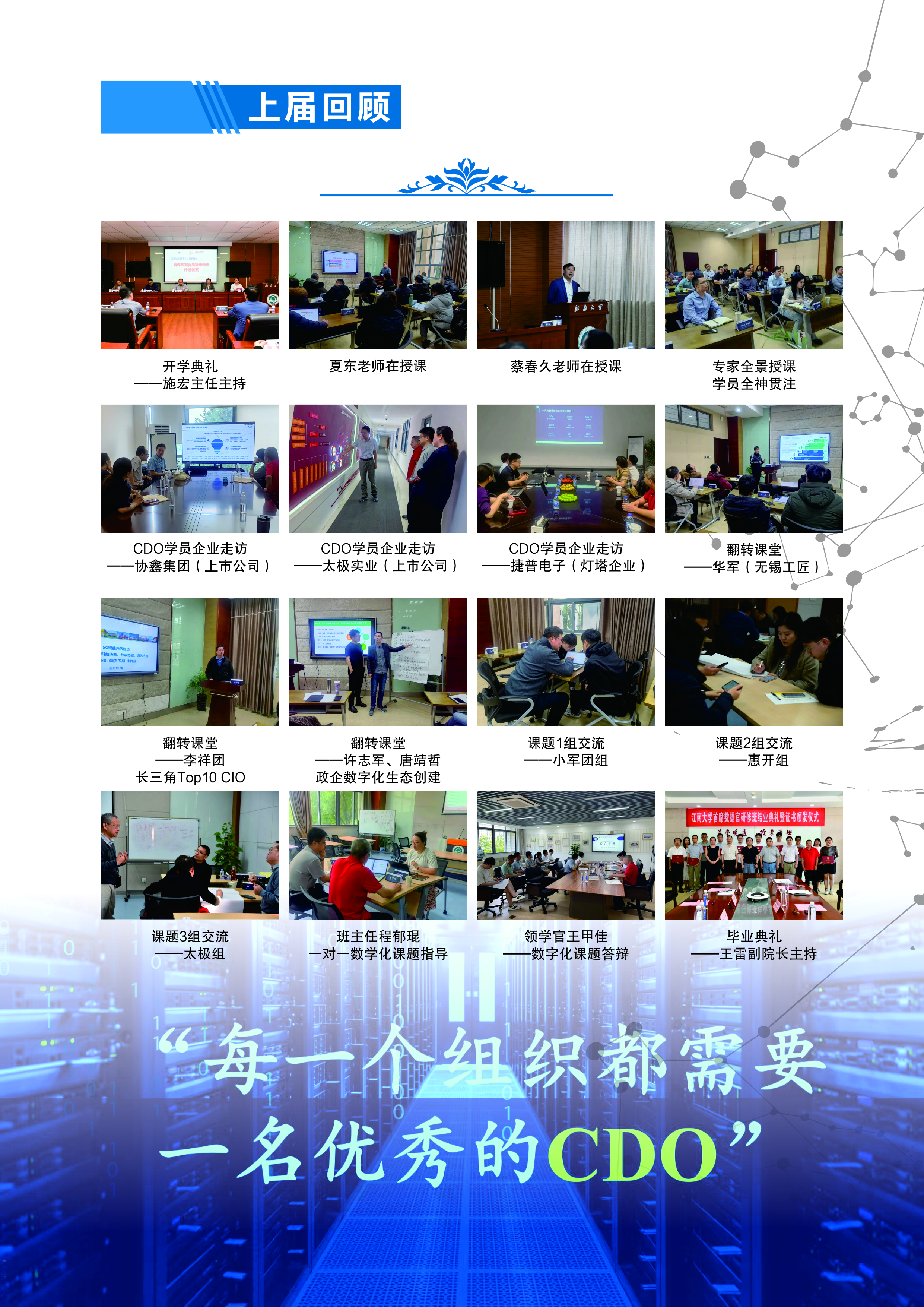 首席数据官研修班不仅仅是教学平台,也是推动首席数据官之间开展业务交流与合作的平台,有利于部门合作、地区合作和实体产业的合作,优势互补,从整体上全面开创数字经济发展新局面。研修班将设立由学员发起的CDO校友会,有组织地开展各类活动,鼓励学员以自组织的方式进行专题探索。研修班也将通过发行内部通讯,进行跨界交流。