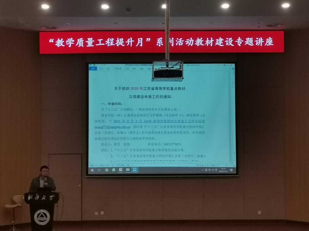 在远东报告厅举办“教学质量工程提升月”系列活动之教材建设专题讲座。朱和平教授应邀和全院教师分享了教材建设项目申报和建设中的体会和经验。
