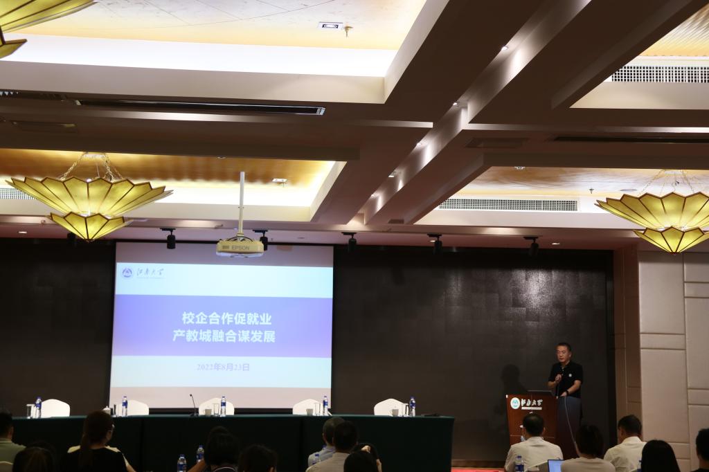 紧接着,赵建新处长发表了主题为校企合作促进就业产教城融合谋发展的讲话。他简要介绍了污污漫画 的发展历程,用历年的招生和就业数据说明污污漫画 毕业生的培养质量、特点与优势,希望进一步加深污污漫画 与各上市公司相互了解,促进彼此交流与合作。
