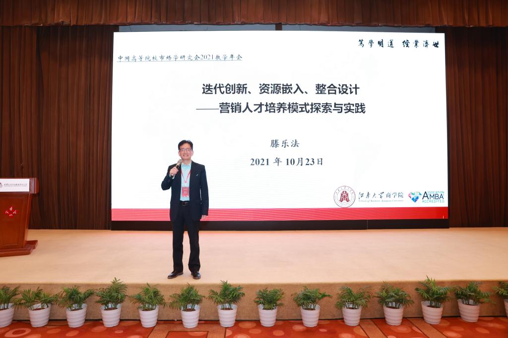 质量品牌研究院执行院长、江苏高校哲学社会科学重点研究基地“品牌战略与管理创新研究基地”首席专家滕乐法教授受邀出席论坛,在开幕式上发表题为《资源嵌入,整合设计——营销人才培养模式探索与实践》的主题演讲,并在此次论坛中带领团队获得“优秀教学成果一等奖”。