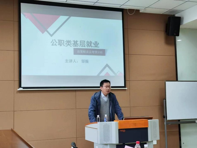 研究生会于MBA116教室成功举办了公考分享讲座,本次讲座邀请到资深公考职业规划师邹振老师,学院20余名同学参加讲座。