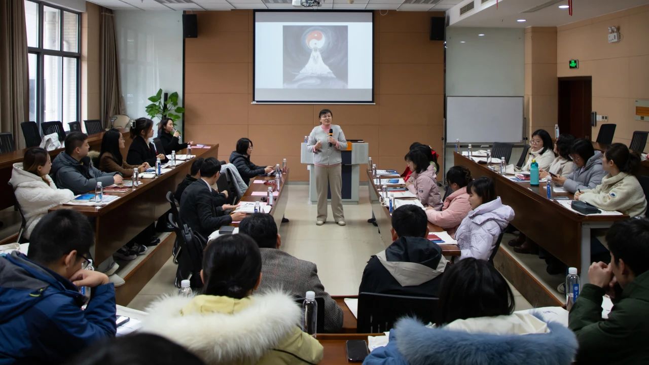 于海云副教授以《国学智慧与企业管理》为主题上了一节公开课。近年来,世界局势风云诡谲,经济全球化深度发展,市场企业竞争愈发激烈,传统的商业发展模式面临着各大挑战。越来越多的企业管理者正在寻求新的突破点,他们将目光转向了备受关注的国学文化上,而经典国学中蕴含的深厚思想精髓也对现代企业管理开发了新思路、新模式和新动力。于老师精彩的授课引发了与会人员的浓厚兴趣和共鸣,博得阵阵掌声。