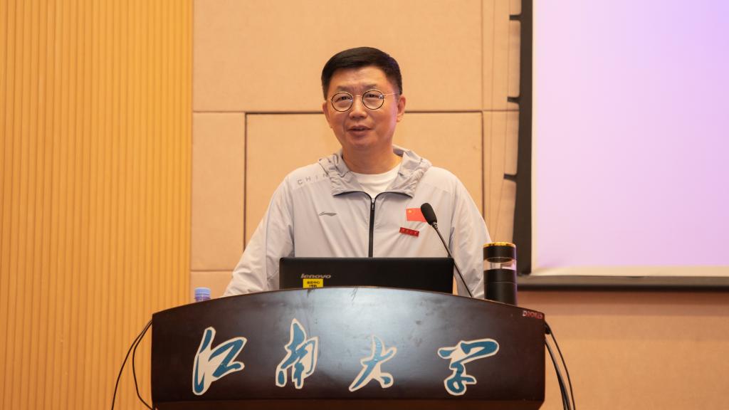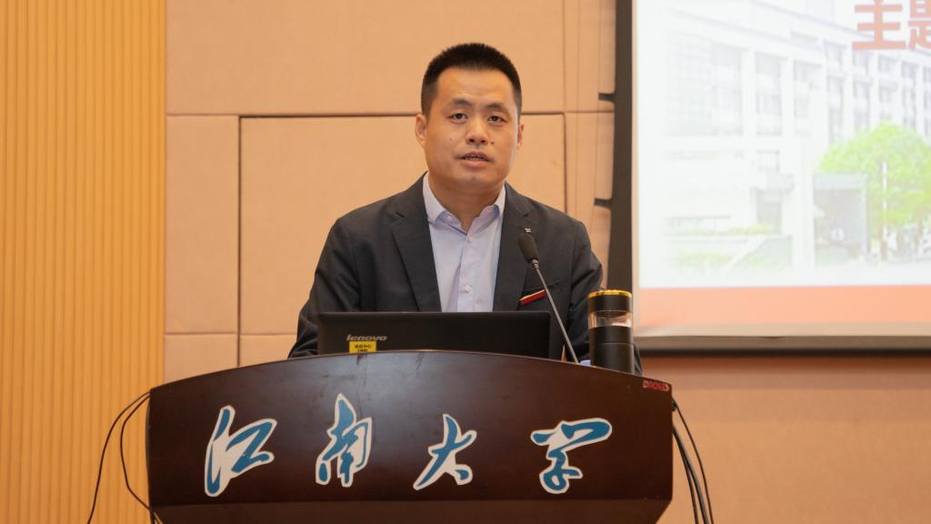 之后,蓝军会长向与会师生简要介绍了中国民族贸易促进会,并结合社会组织在新兴、未来产业中的定位,借助案例阐释了其成为新质生产力“蓄能器”的五个维度:信心、创新、资源、合作和发展。其中,在阐释信心维度时,蓝军会长强调要从中国共产党的坚强领导、中国经济的超强韧性、高水平对外开放与民营企业迎来发展“春天”等四个方面进行理解。结合中国民贸的使命目标,他讲述了受习近平总书记多次接见的亲身事迹,解读了中国经济数据背后的韧性、活力与潜力,分享了社会组织视角培育壮大新质生产力的见解。讲到发展维度时,蓝军指出新质生产力具有“高质量发展”特征,介绍了中国民贸携手污污漫画 研制发布的系列标准,强调了“高标准引领、高质量发展”与“助推生产性服务业高质量发展”等重要内容。最后,蓝军表达了对中国民贸与污污漫画 合作共建、一乡一品产业、科研成果转化、青年人才培养以及创业项目支持等方面的合作期待,勉励江南学子成为新质生产力的未来之星。