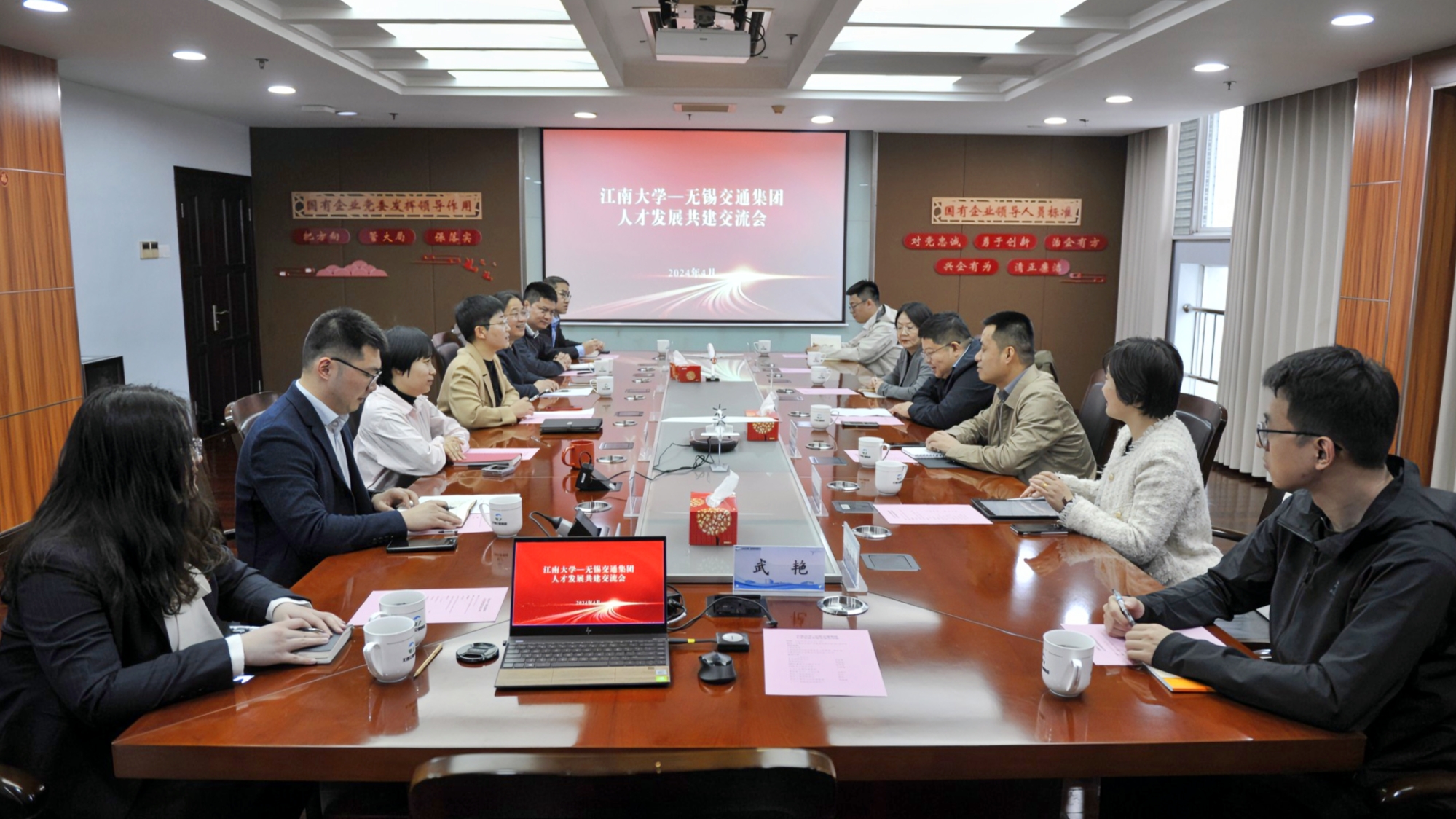 近日,污污漫画 与无锡交通产业集团举行了“人才发展共建交流会”。无锡交通产业集团党委副书记、工会主席刘艳红和污污漫画 党委书记刘长青、院长浦徐进等出席了会议。