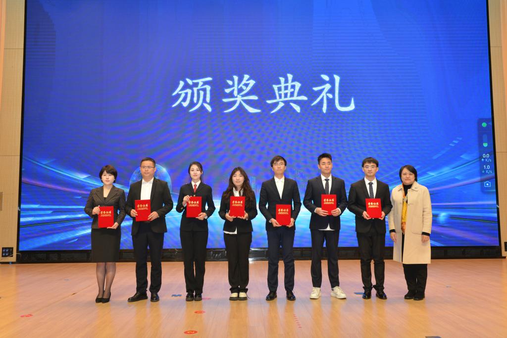颁发一等奖证书(左三为上能电气队队长陈柏含)