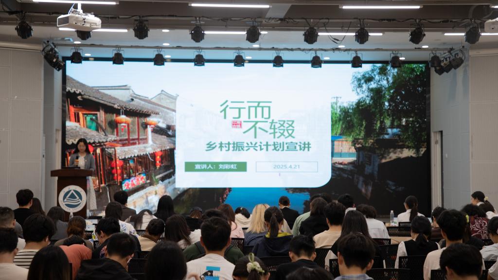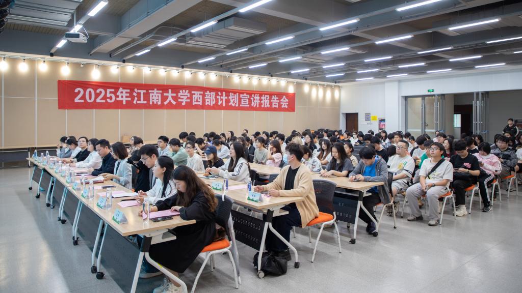 西部计划宣讲团成员荣鲲从选拔标准、政策支持、招募流程、服务内容等方面详细解读。肖江从文化底蕴和人文景观等方面介绍了滨湖区的优势所在,就滨湖区的人才政策以及涵盖子女教育、住房保障和购房补贴等多维度保障措施进行详细解读。滨湖区胡埭镇团委兼职干事,龙延村工作人员吴宇飞以《扎根乡村热土,心绽振兴繁花》为题,分享了胡埭镇当地乡村振兴计划的发展与优势,她结合个人成长心得,诚挚邀请江南学子加入乡村振兴队伍,把论文写在田野上,让梦想绽放在村庄里!