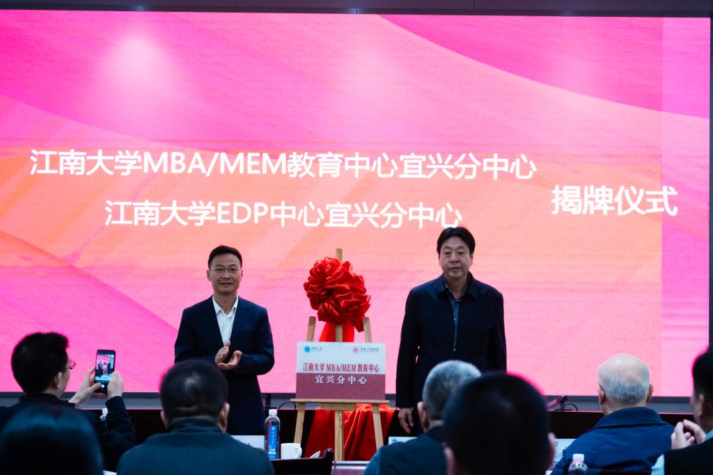 MBA/MEM教育中心、EDP中心宜兴分中心揭牌并表示祝贺。