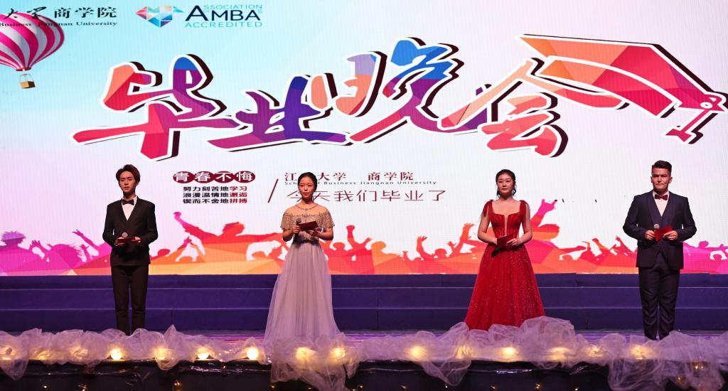 艺术团礼仪部带来的走秀《Clint Eastwood》等节目,完美彰显了青春的朝气,诉说了浓浓的同窗情谊。第三篇章“奋进新时代”中,承载着4年大学生活的回忆视频将现场的气氛推向了高潮,周珊珊、马超、朱正昊带来的《歌曲串烧——我们》,表达了毕业生对拥抱美好明天的憧憬,展现了他们即将远航、不惧挑战的豪情与信念。