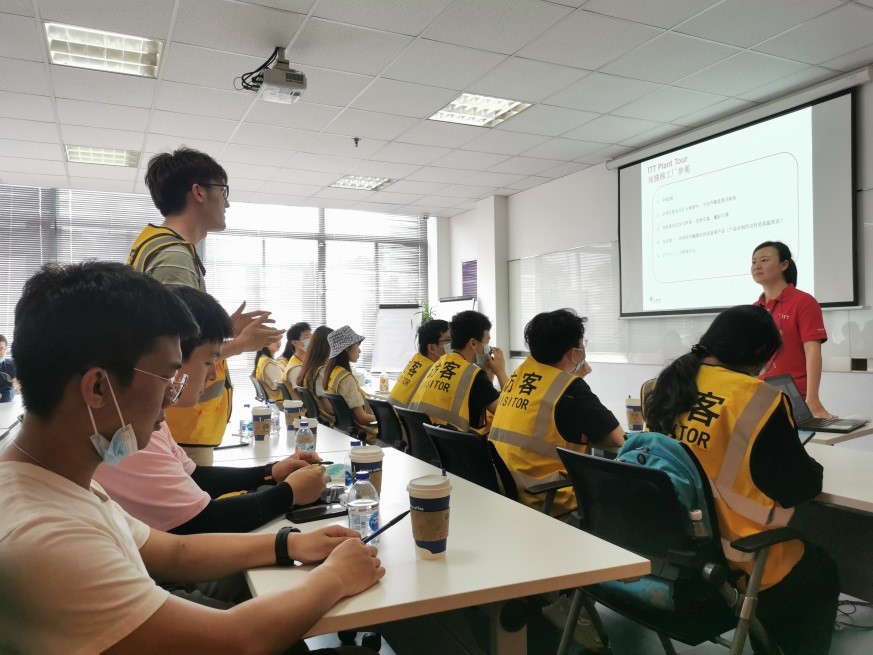 观看“安全访问须知”后,师生一行分两批在工作人员的带领下对ITT无锡制造中心、研发中心参观学习,参观后同学们对车间布局、精益生产与精益物流、组织架构等方面展开交流,现场气氛十分活跃。
