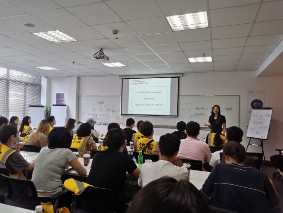 国贸专业的供应链经理徐钵全面介绍了信息流、现金流、物流作用下的ITT供应链全流程,从订单管理、生产计划、物料采购、生产制造、仓储运输五个环节进行了详细介绍,通过列举“牛鞭效应”论述了供应链信息传递的失真过程,强调了通过供应链管理满足客户需求的重要性。通过将书本理论知识与工作中的实际应用相结合,深入浅出、通俗易懂,同学们有了深切的体会。