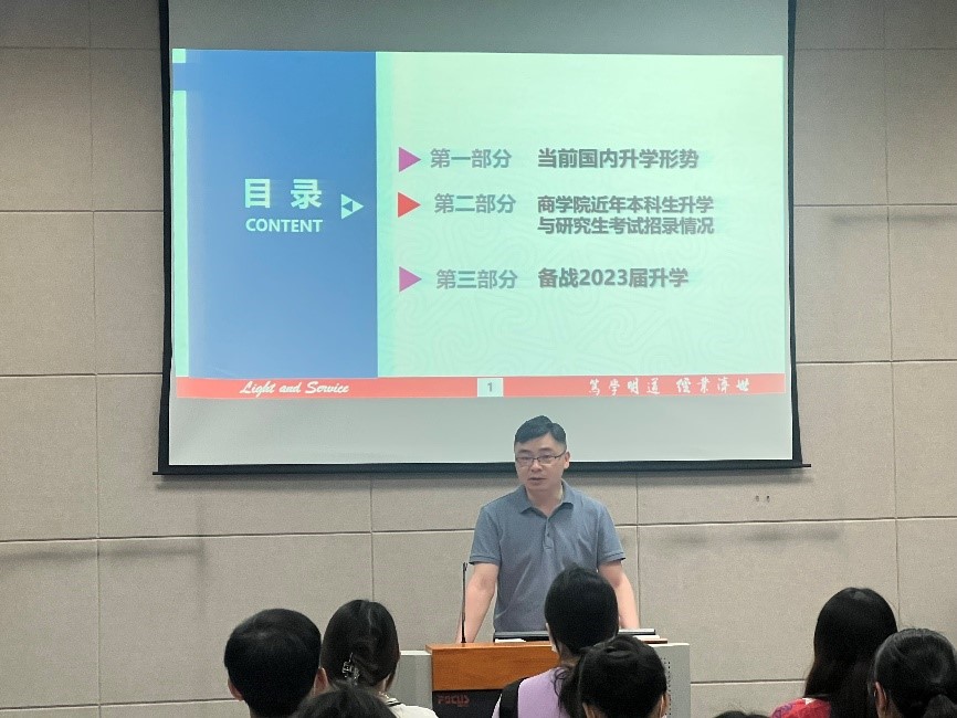 历来重视本科生的学业规划与导向升学工作,主动将工作端口前移,努力将“坚持升学深造导向,提升人才培养质量”的工作理念融入学生工作的全链条,多措并举助推学院教育办学与人才培养提质增效。2019级本科生考研专项交流会的成功举办,将极大帮助2019级商院学子做好学业规划中的选择题,设计适合自己的升学方案和最优选择。学院也将继续助力学子做好升学就业保障,努力成为商院学子乘风破浪、追寻理想道路上最坚实的后盾!