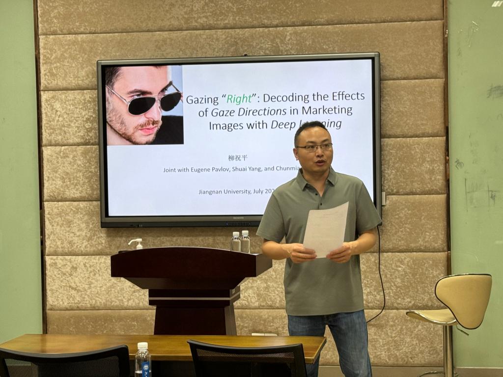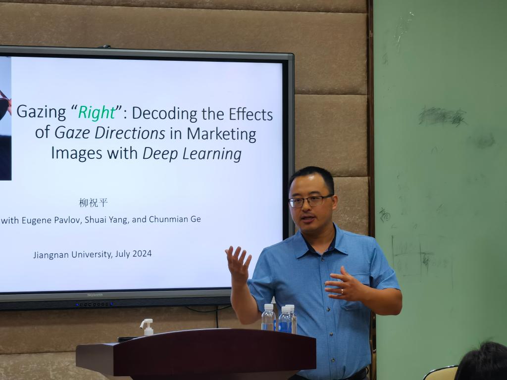 助理教授柳祝平老师,带来了题为“Gazing ‘Right’: Decoding the Effects of Gaze Directions in Marketing Images with Deep Learning”的学术报告。张建强教授主持了本期工作坊,污污漫画
