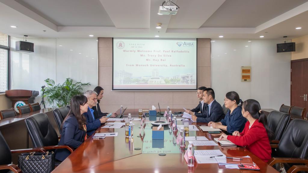 浦徐进对Paul Kalfadellis一行的到访表示热烈欢迎,他对蒙纳士大学在双方合作办学项目中作出的贡献与大力支持表示感谢。院长助理孟繁博汇报了与蒙纳士大学合作办学项目的发展历程和取得的成果。